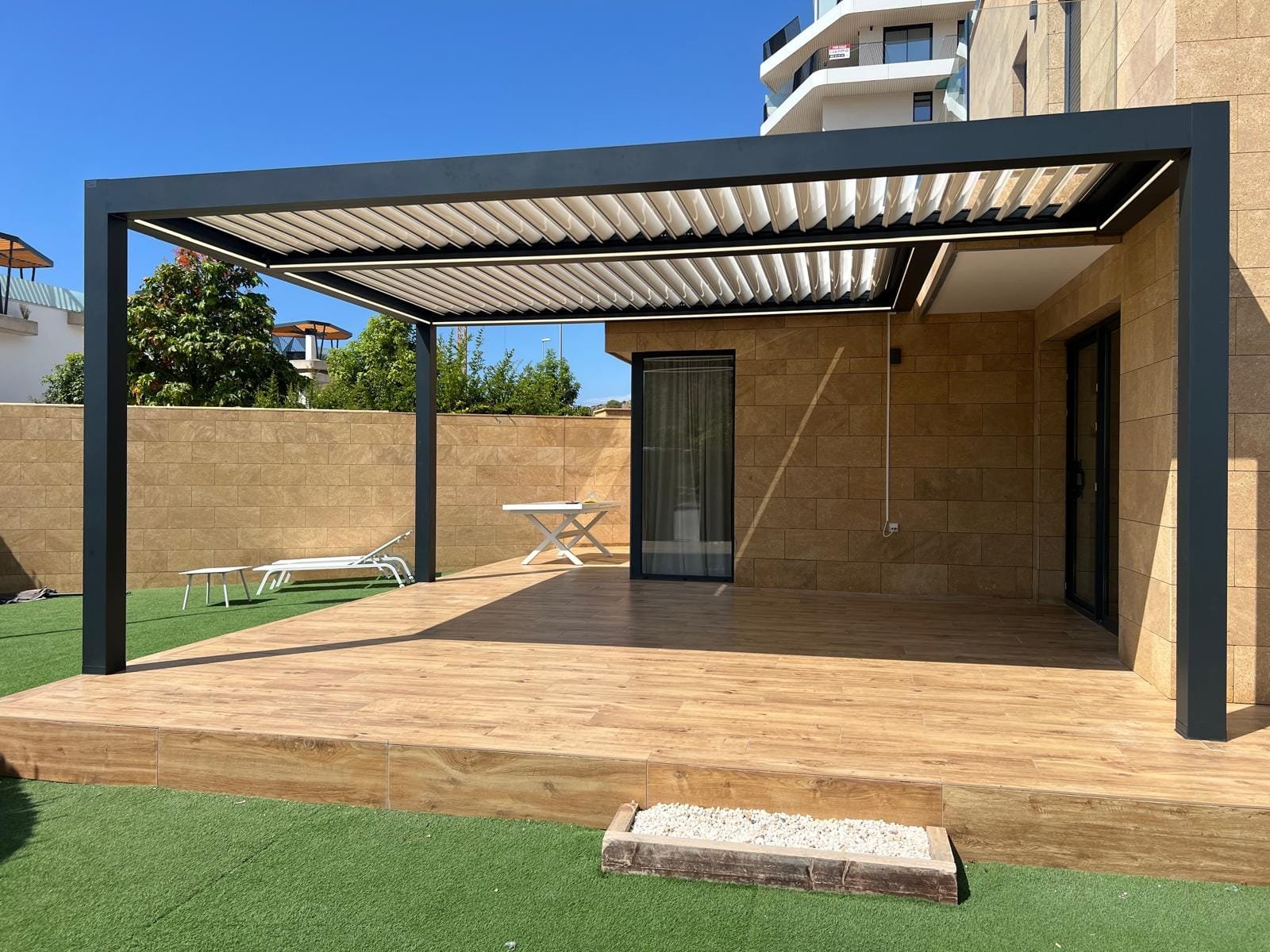 En Arkia Estructuras seguimos apostando por el diseño, la innovación y la funcionalidad en cada uno de nuestros proyectos. En esta ocasión, hemos tenido el placer de realizar la instalación de una pérgola bioclimática en Villajoyosa, Alicante, ofreciendo al cliente un espacio exterior elegante, cómodo y perfectamente protegido durante todo el año.