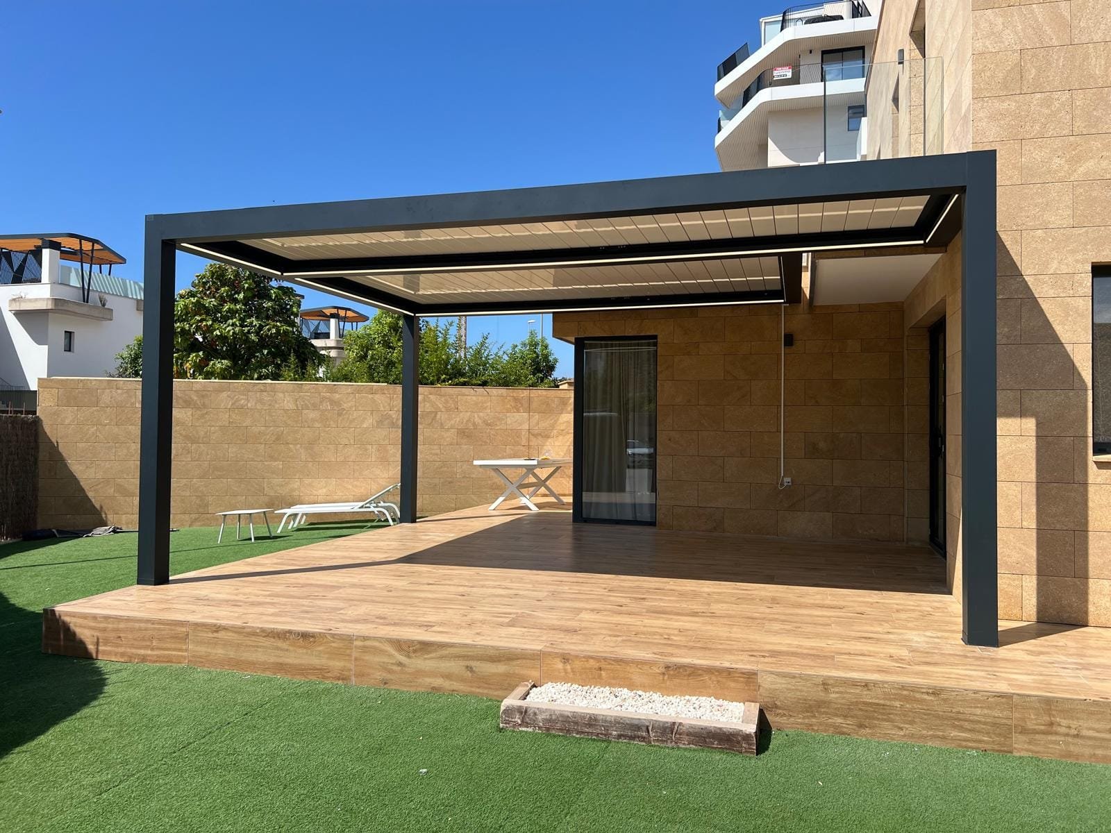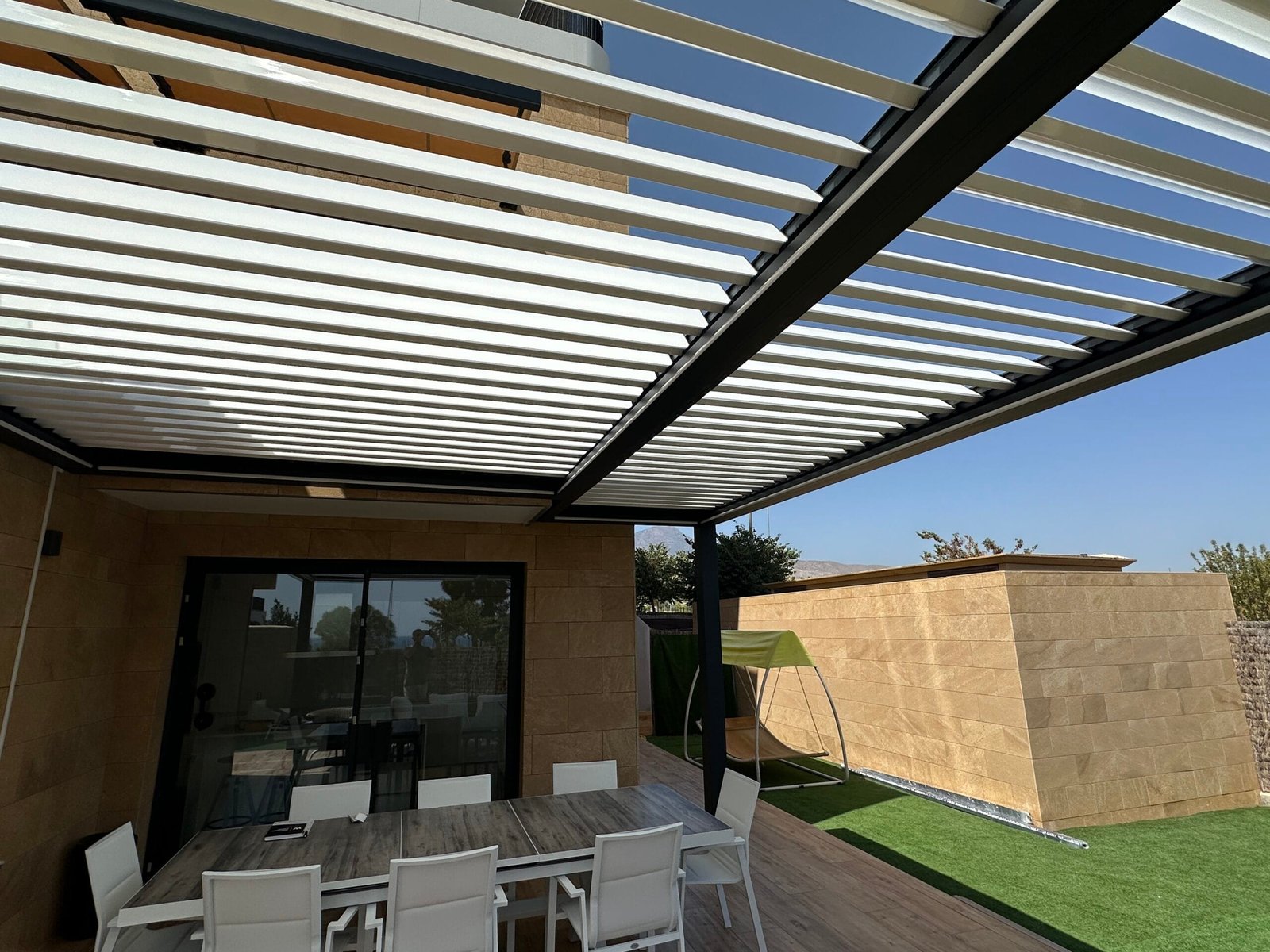 Las pérgolas bioclimáticas no solo aportan belleza, sino que también ofrecen: